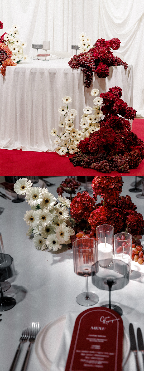 на тончайшей работе с фактурами: от глубоких винных и бархатных текстур до стеклянного блеска и шелковой гладкости. Каждый материал раскрывает тему изобилия, чувственности