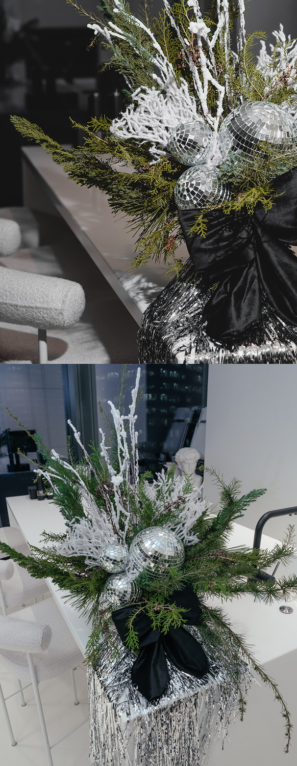 Банты - глобальный тренд 2024 года в новогоднем декоре. А черные банты — определённая провокация, которая очень в духе нашей героини.