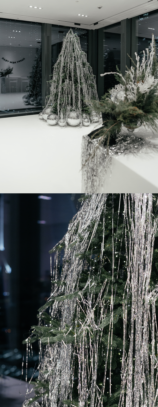 в новогоднем декоре. А черные банты — определённая провокация, которая очень
